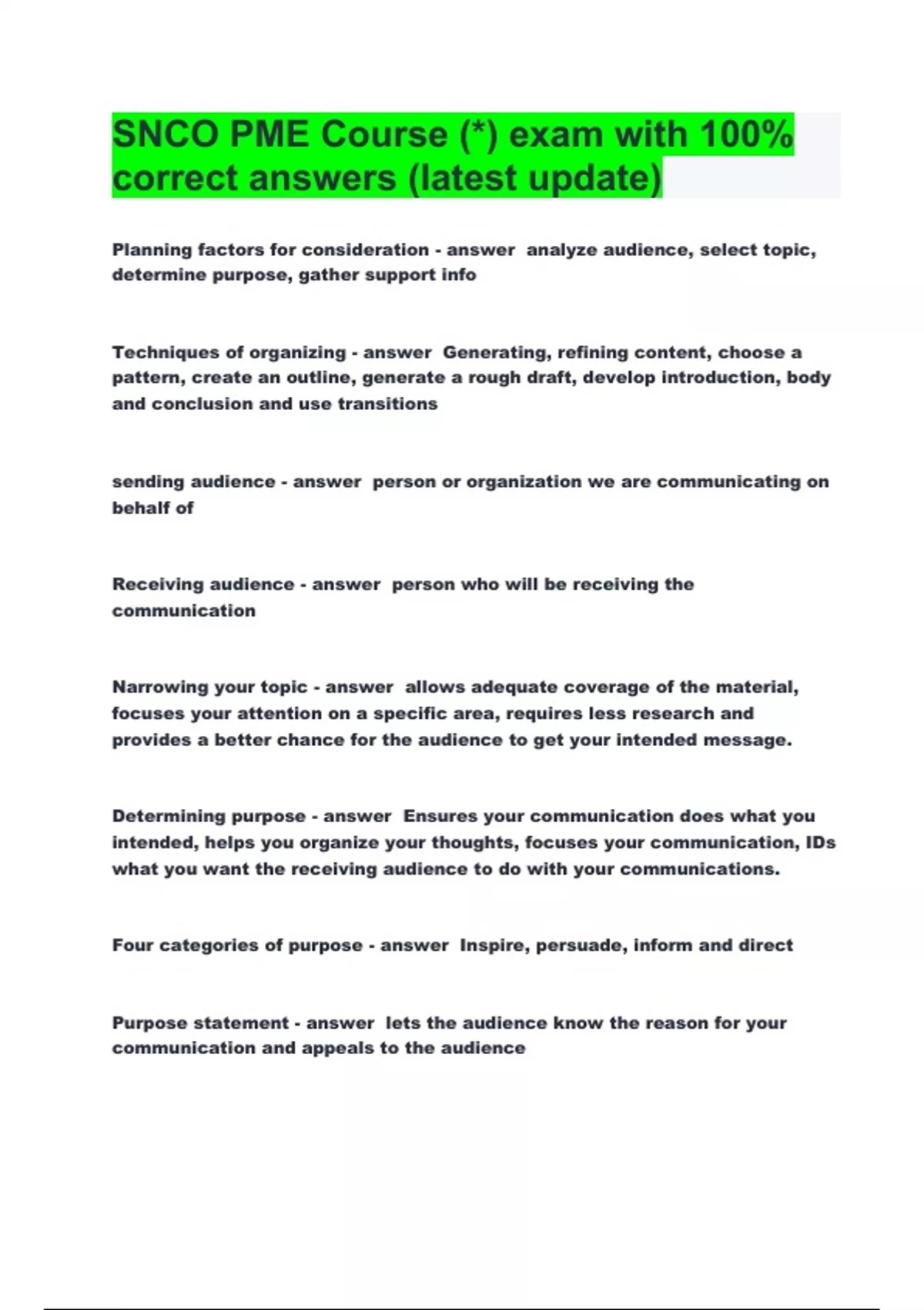 SNCO PME Course () exam with 100% correct answers (latest update).
