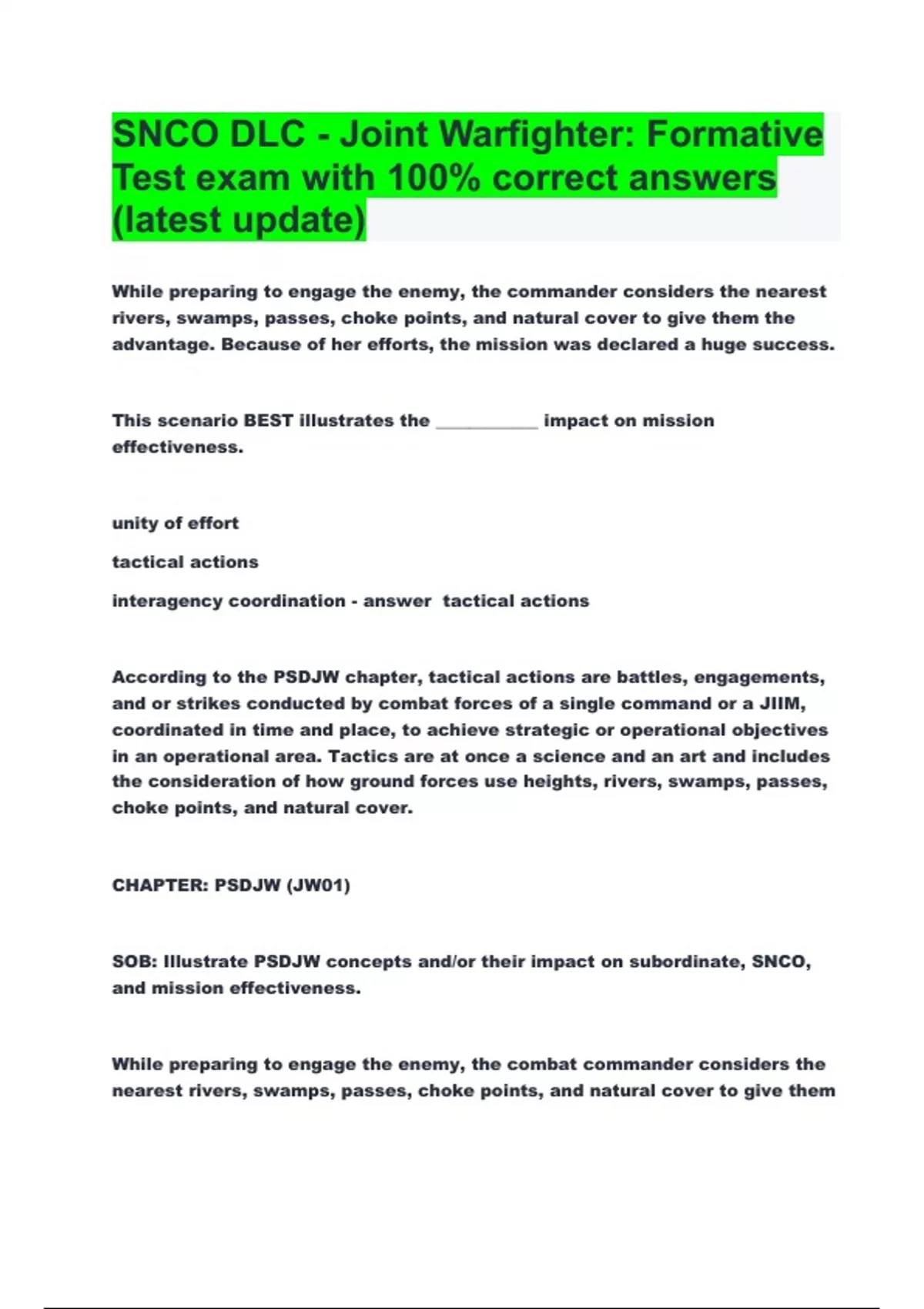 SNCO DLC - Joint Warfighter: Formative Test exam with 100% correct answers (latest update)