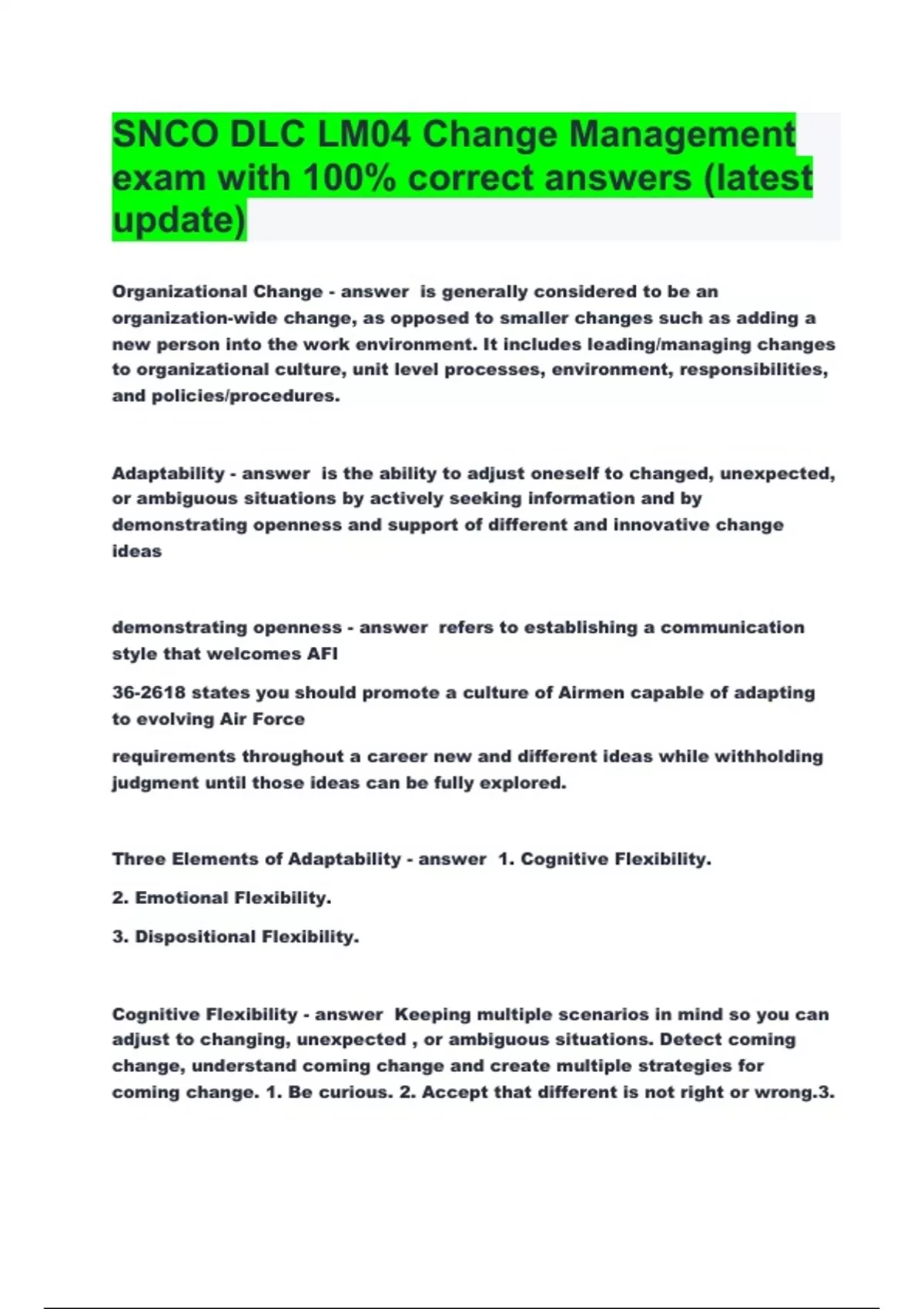 SNCO DLC LM04 Change Management exam with 100% correct answers (latest update)