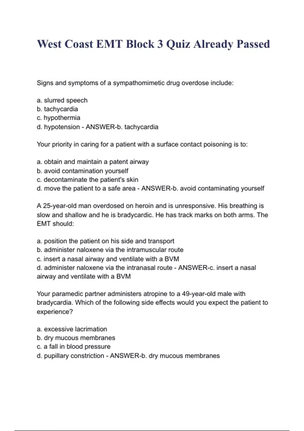 West Coast EMT Block 3 Quiz Already Passed