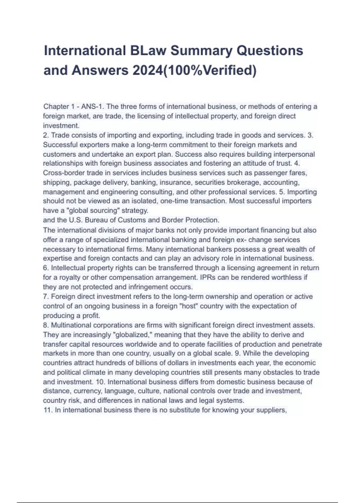 International BLaw Summary Questions and Answers 2024(100%Verified)