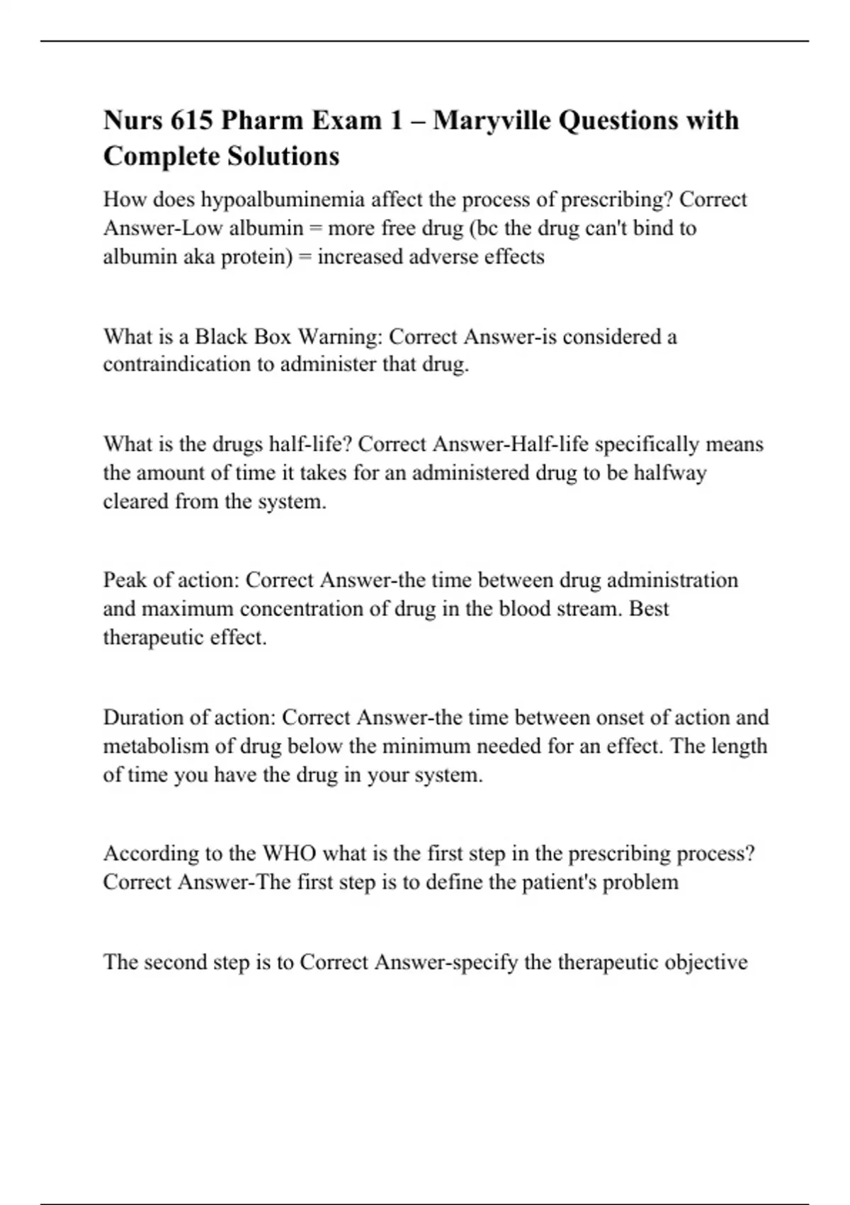 NURS 615 Pharm Maryville College -Nurs 615 Pharm Exam 1 – Maryville Questions with Complete Solutions
