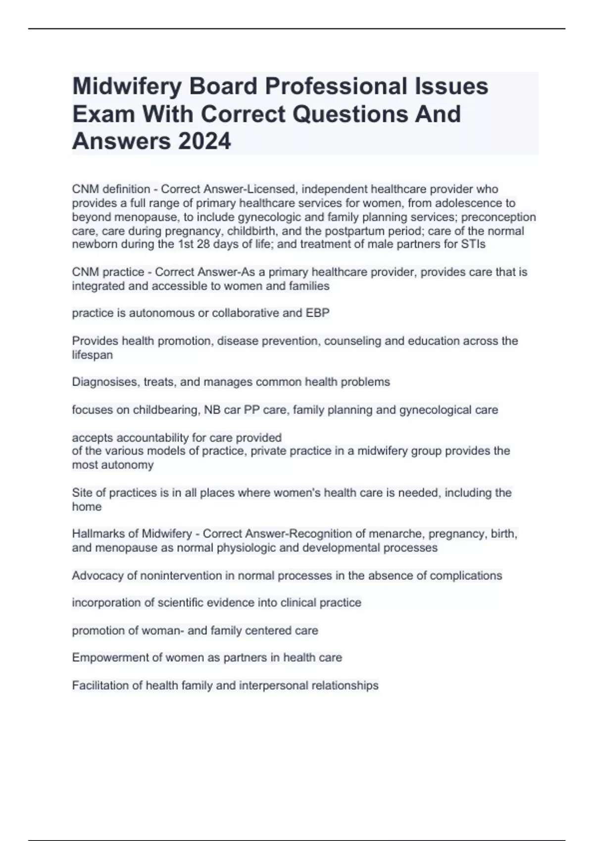 Midwifery Board Professional Issues Exam With Correct Questions And Answers 2024