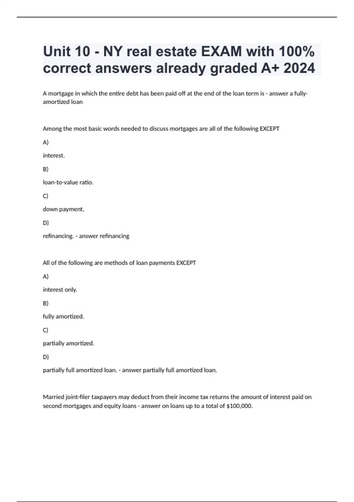 Unit 10 - NY real estate EXAM with 100% correct answers already graded A+ 2024