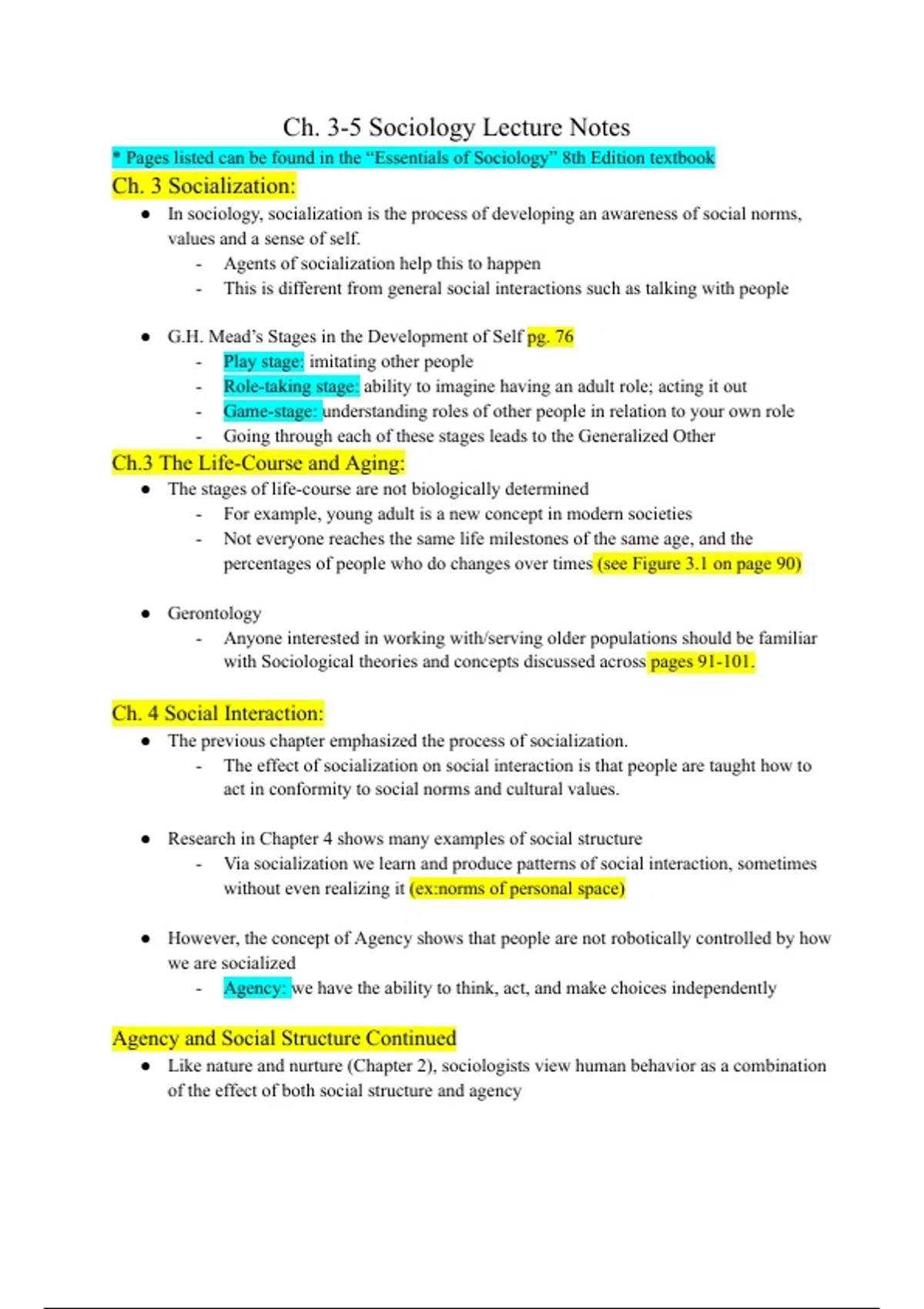 This document consists of chapter 3-5 sociology lecture notes. These notes are from the SOCI 2000 online class available at Auburn University at Montgomery. The document is a pdf.
