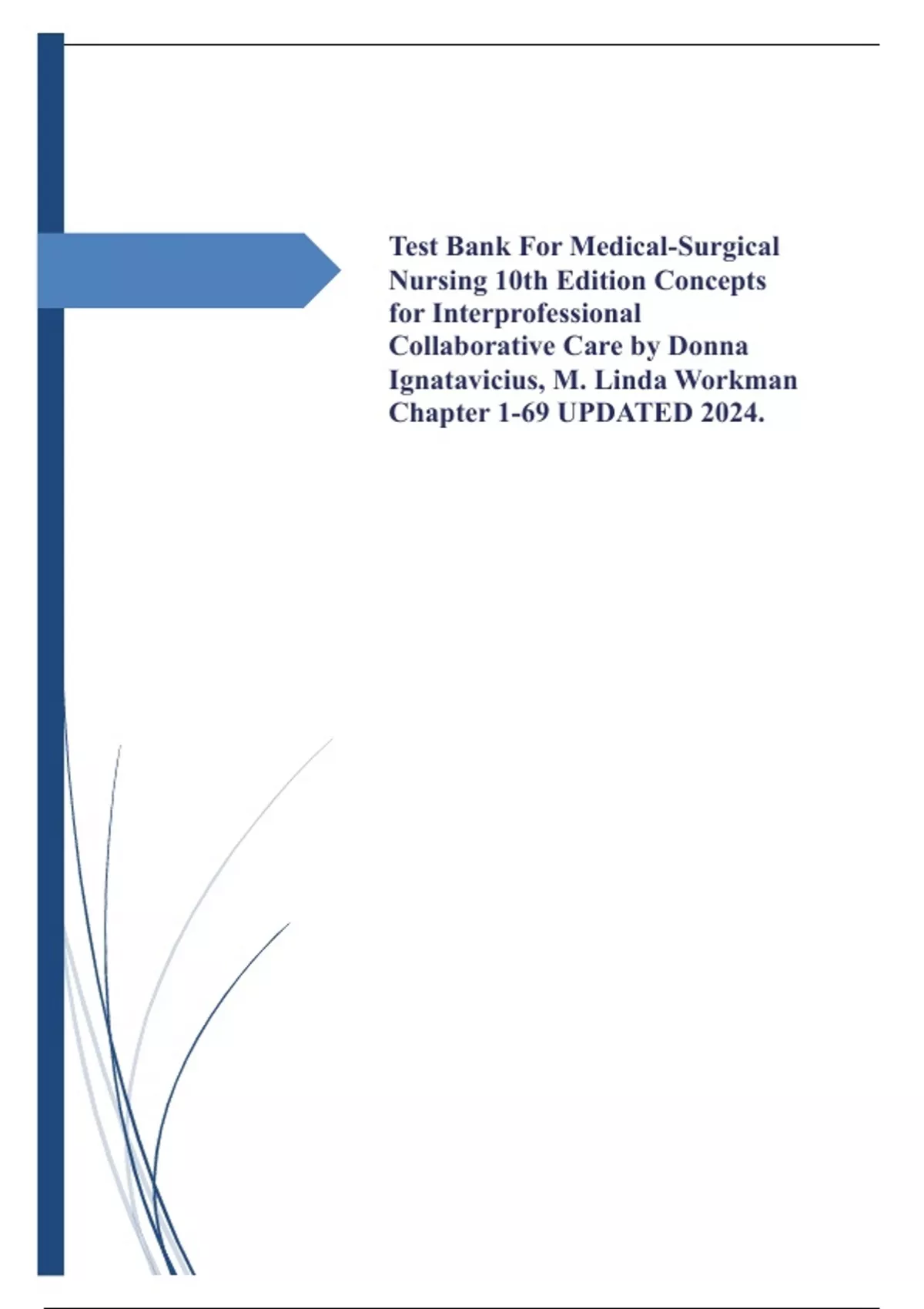 Test Bank For Medical-Surgical Nursing 10th Edition Concepts for Interprofessional Collaborative Care by Donna Ignatavicius, M. Linda Workman Chapter 1-69 UPDATED 2024.