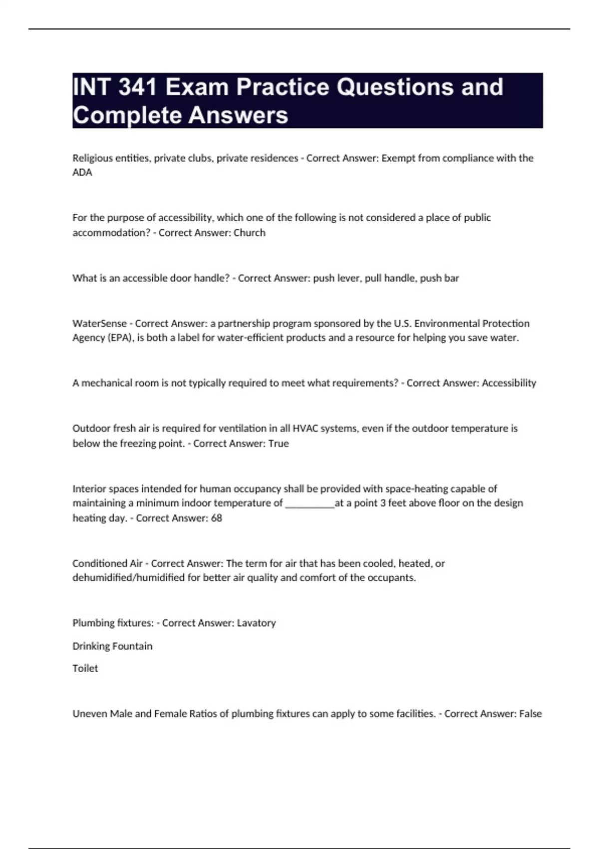 int 341 exam practice questions and complete answe