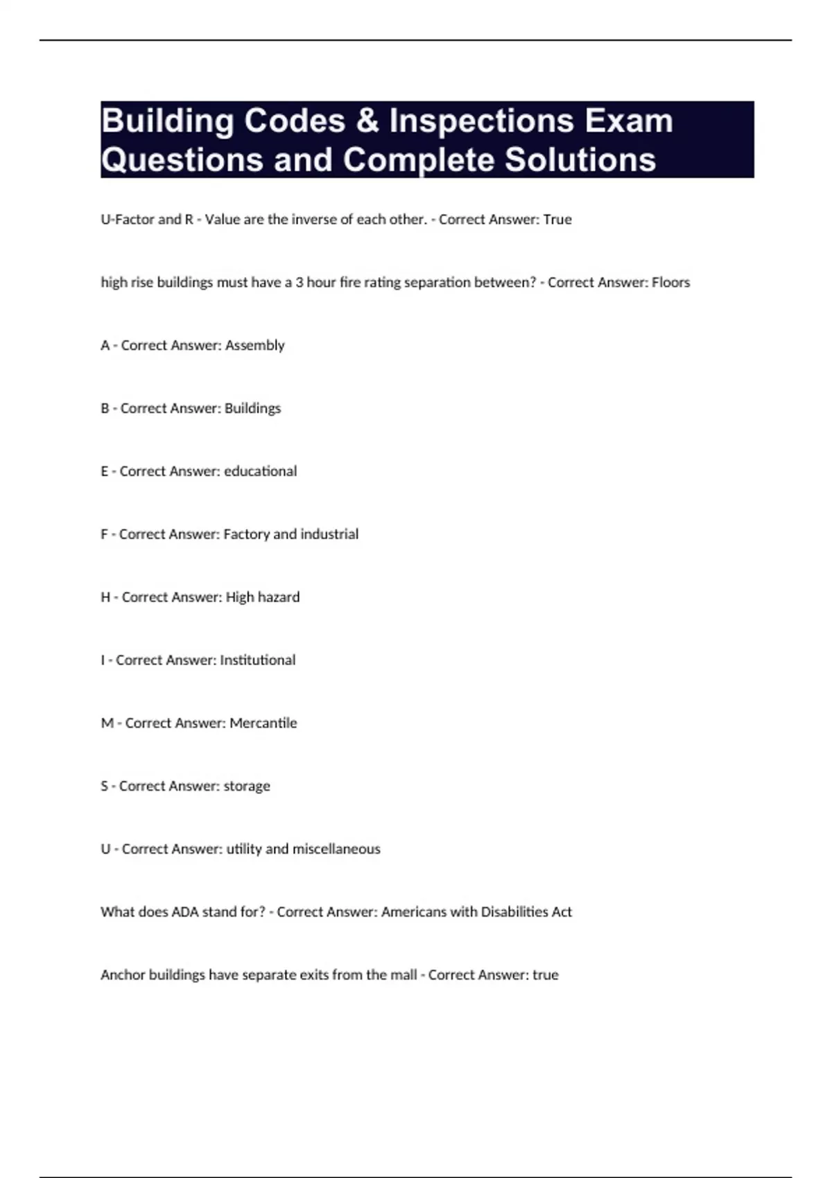 Building Codes & Inspections Exam Questions and Complete Solutions.