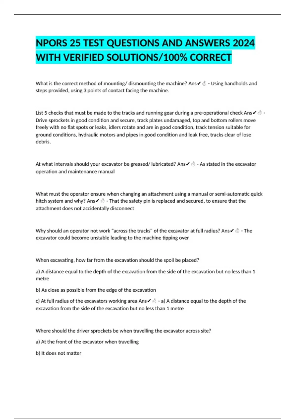 NPORS 25 TEST QUESTIONS AND ANSWERS 2024 WITH VERIFIED SOLUTIONS/100% CORRECT