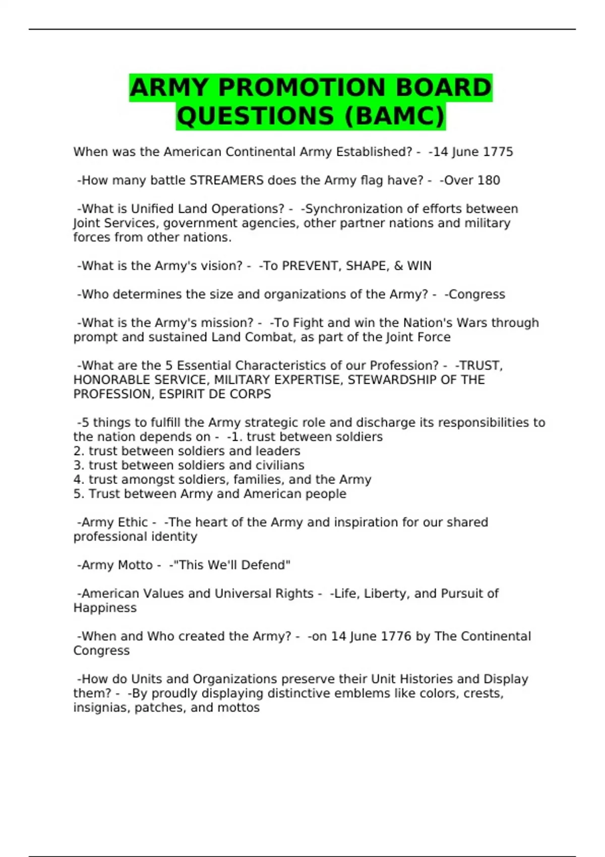 ARMY PROMOTION BOARD QUESTIONS (BAMC)