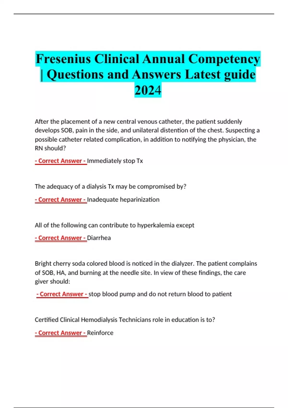 Fresenius Clinical Annual Competency | Questions and Answers Latest guide 2024 Fresenius Clinical Annual Competency | Questions and Answers Latest guide 2024 Fresenius Clinical Annual Competency | Questions and Answers Latest guide 2024