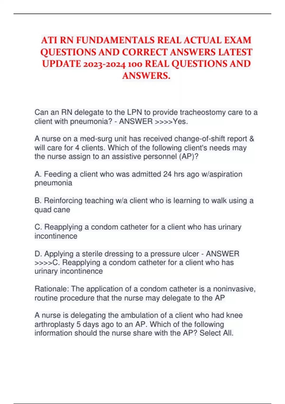 ATI RN FUNDAMENTALS REAL ACTUAL EXAM QUESTIONS AND CORRECT ANSWERS LATEST UPDATE REAL QUESTIONS AND ANSWERS.