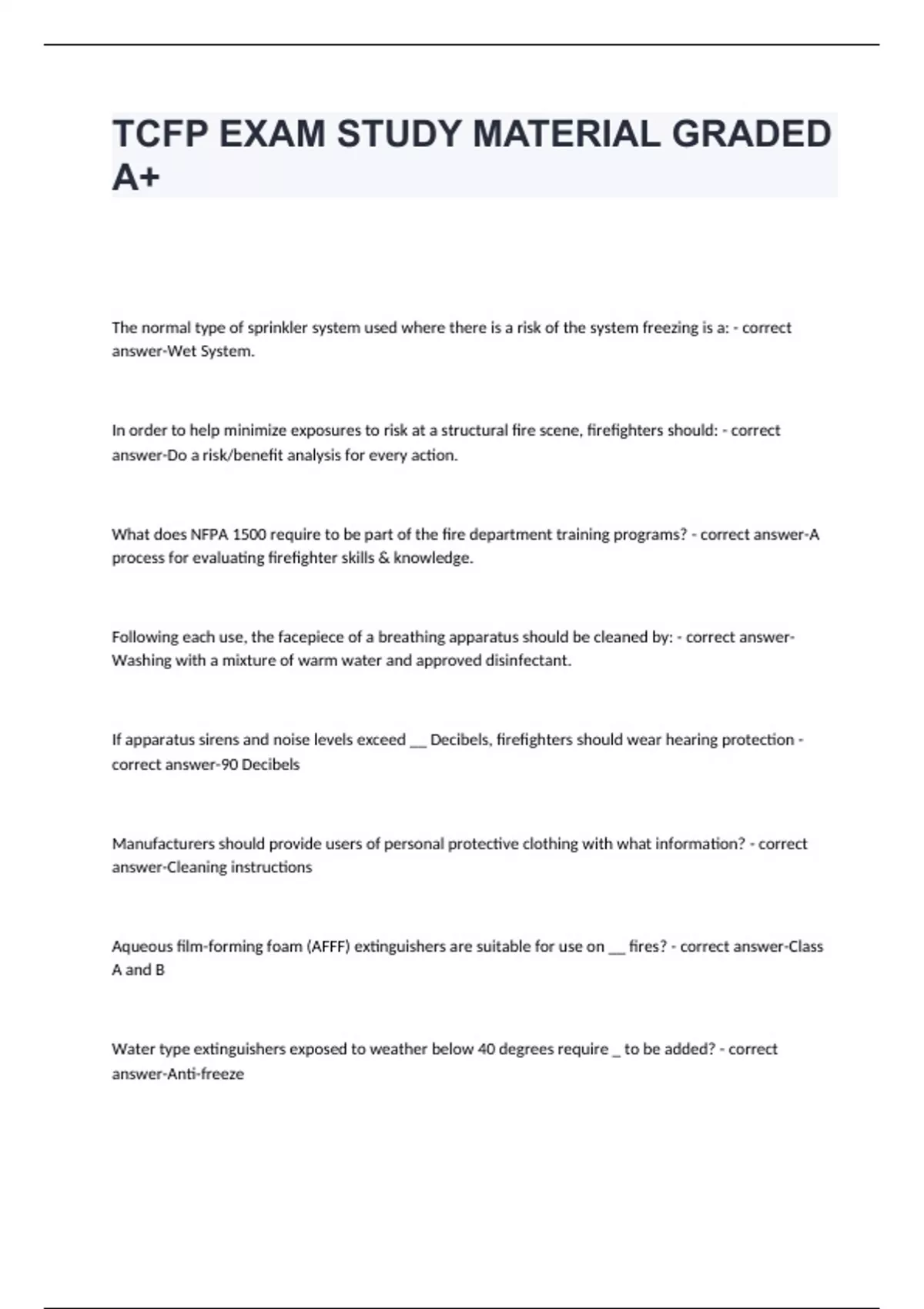 TCFP EXAM STUDY MATERIAL GRADED A+