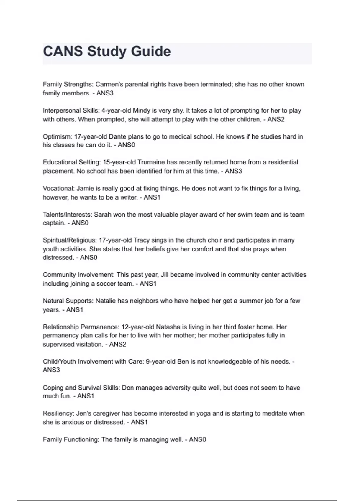 CANS Study Guide questions and answers A+ score assured 2024/2025