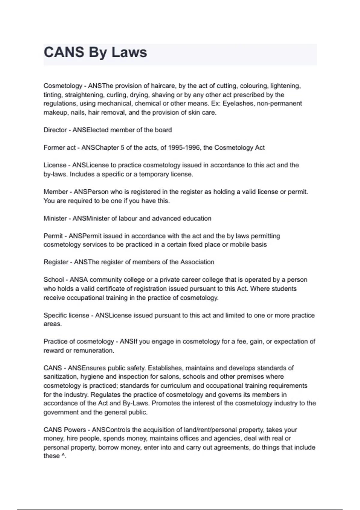 CANS By Laws questions and answers A+ score assured 2024/2025