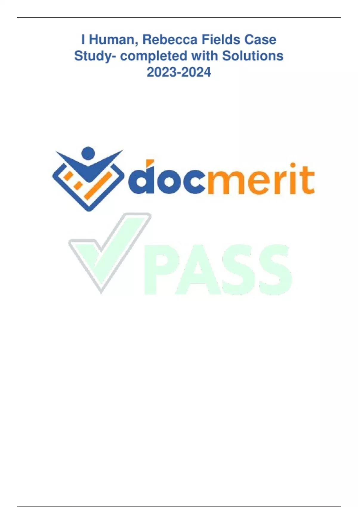 I Human, Rebecca Fields Case Study- completed with Solutions 2022 I Human . Rebecca Fields Complete Case Study with Correct solutions History: 23 questions required by expert. Physical Exam: 15 required Vital signs, SPo2, Spco, Etco2, Mental status Skin, inspect skin overall HEENT: inspect mouth, pharynx, look inears with otoscope, inspect eyes, look up nostrilsNeck: palpate neck, evaluate range of motion Lymphatic: palpate all lymph nodes Chest wall and lungs: auscultate lungs Abdomen: palpate abdomen