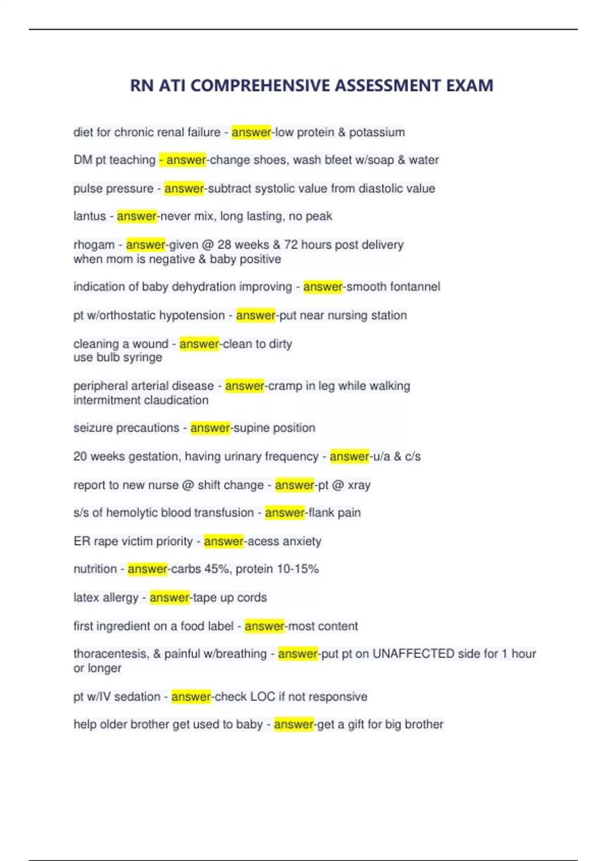 - RN ATI COMPREHENSIVE ASSESSMENT