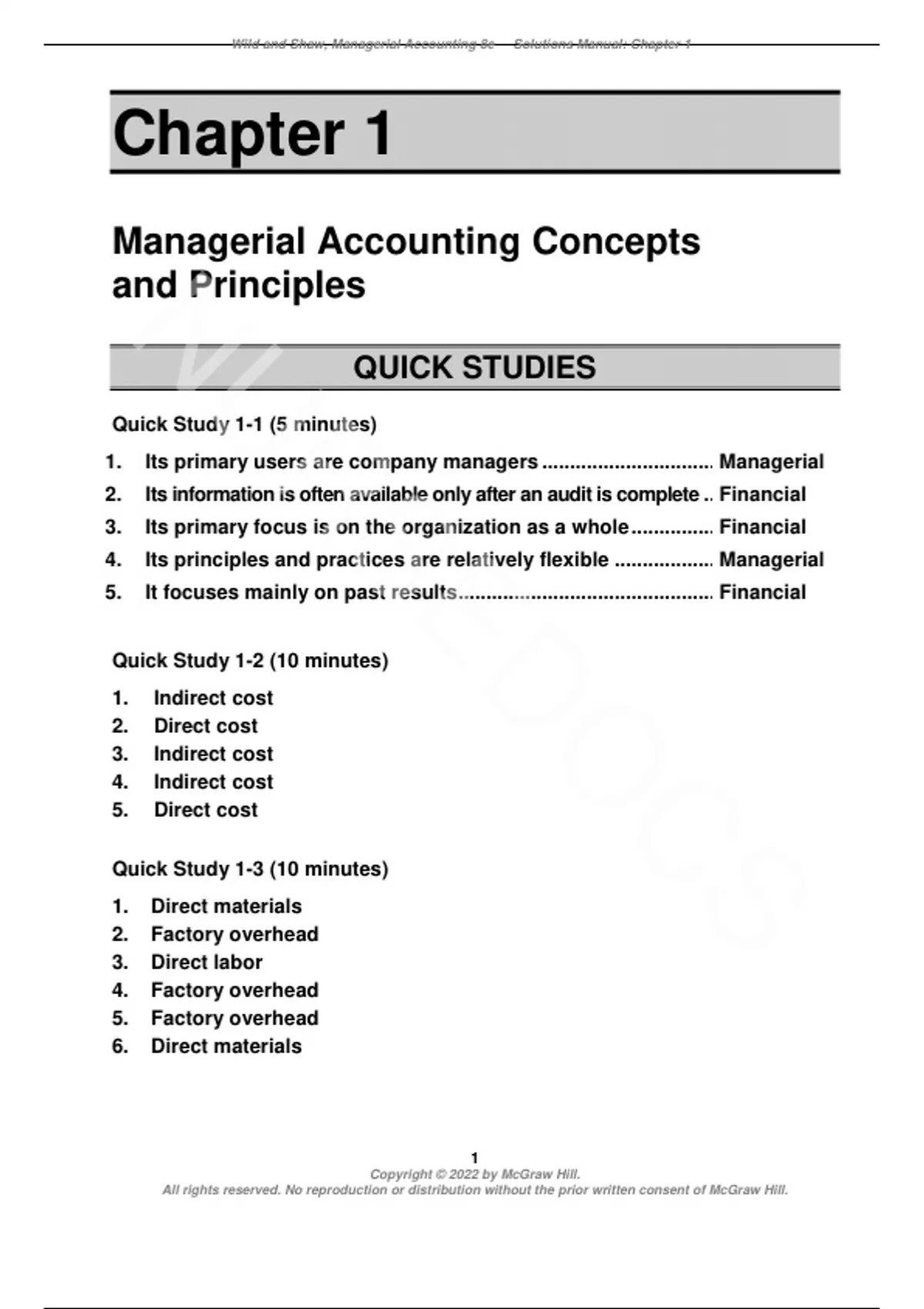 Solution Manual For Managerial Accounting 8th Edition By John Wild, Ken Shaw, Barbara Chiappetta