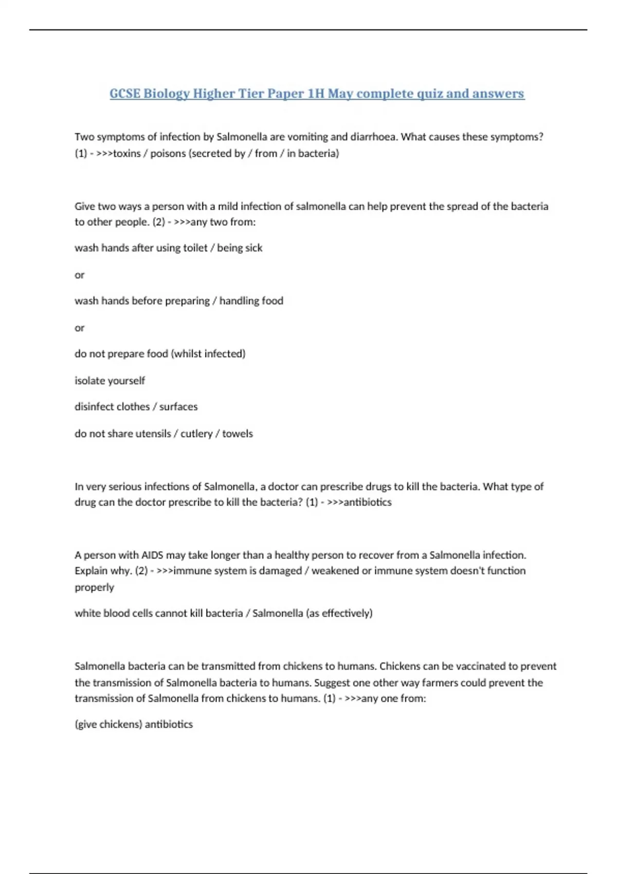 GCSE Biology Higher Tier Paper 1H May complete quiz and answers.