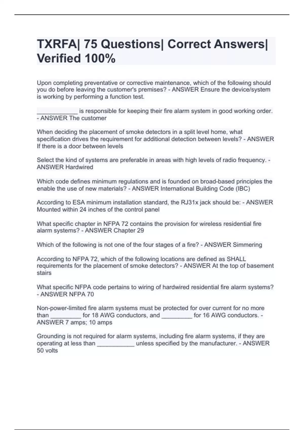 TXRFA| 75 Questions| Correct Answers| Verified 100%