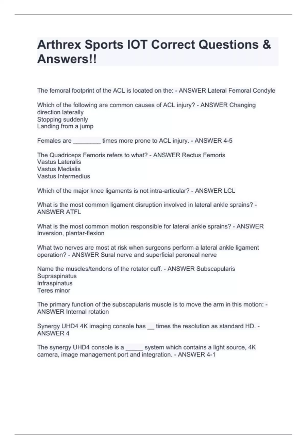 Arthrex Sports IOT Correct Questions & Answers!!