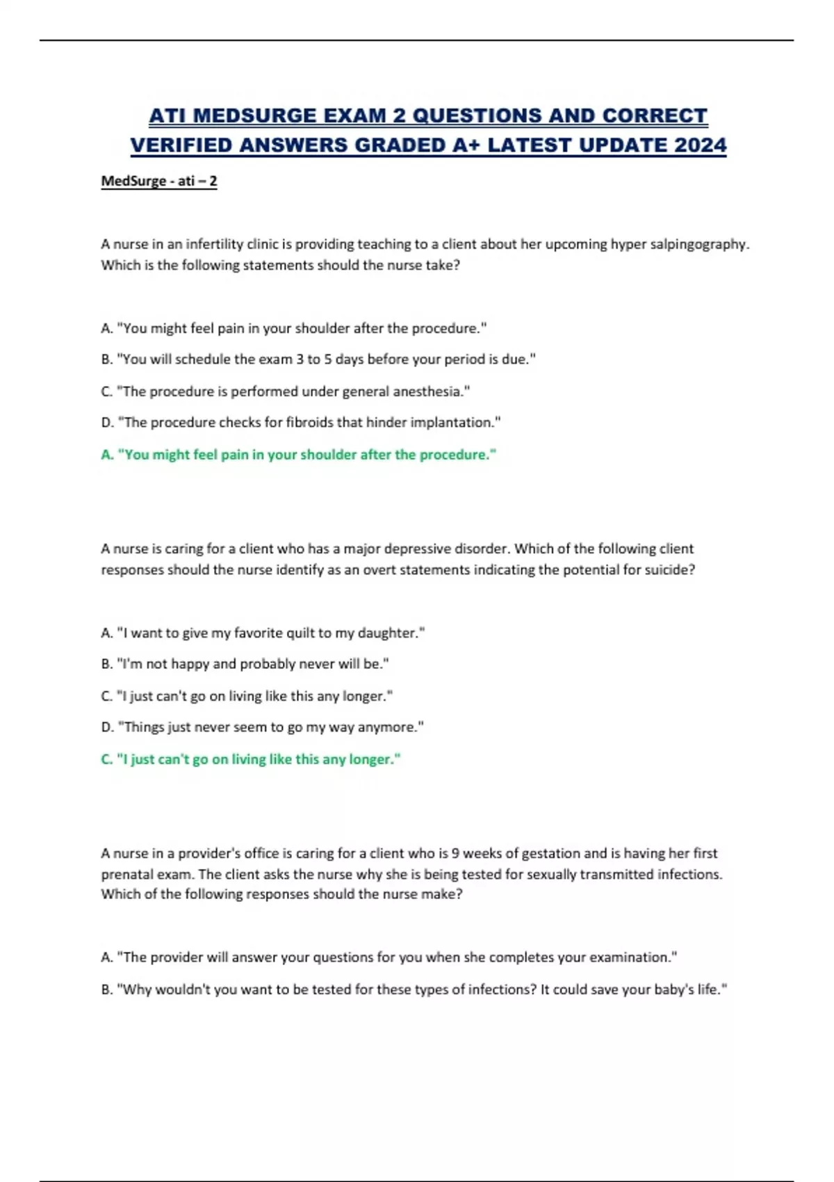 ATI MEDSURGE EXAM 2 QUESTIONS AND CORRECT VERIFIED ANSWERS GRADED A+ LATEST UPDATE 2024