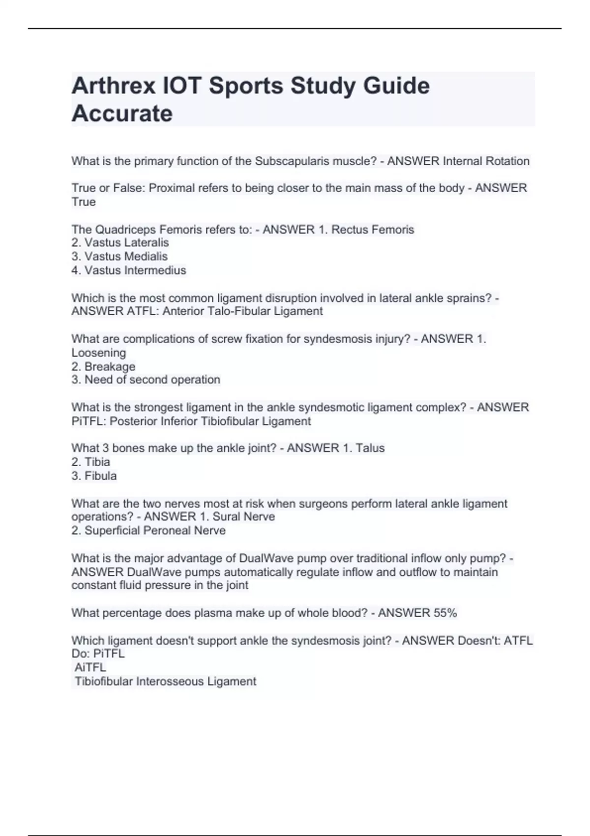 Arthrex IOT Sports Study Guide Accurate
