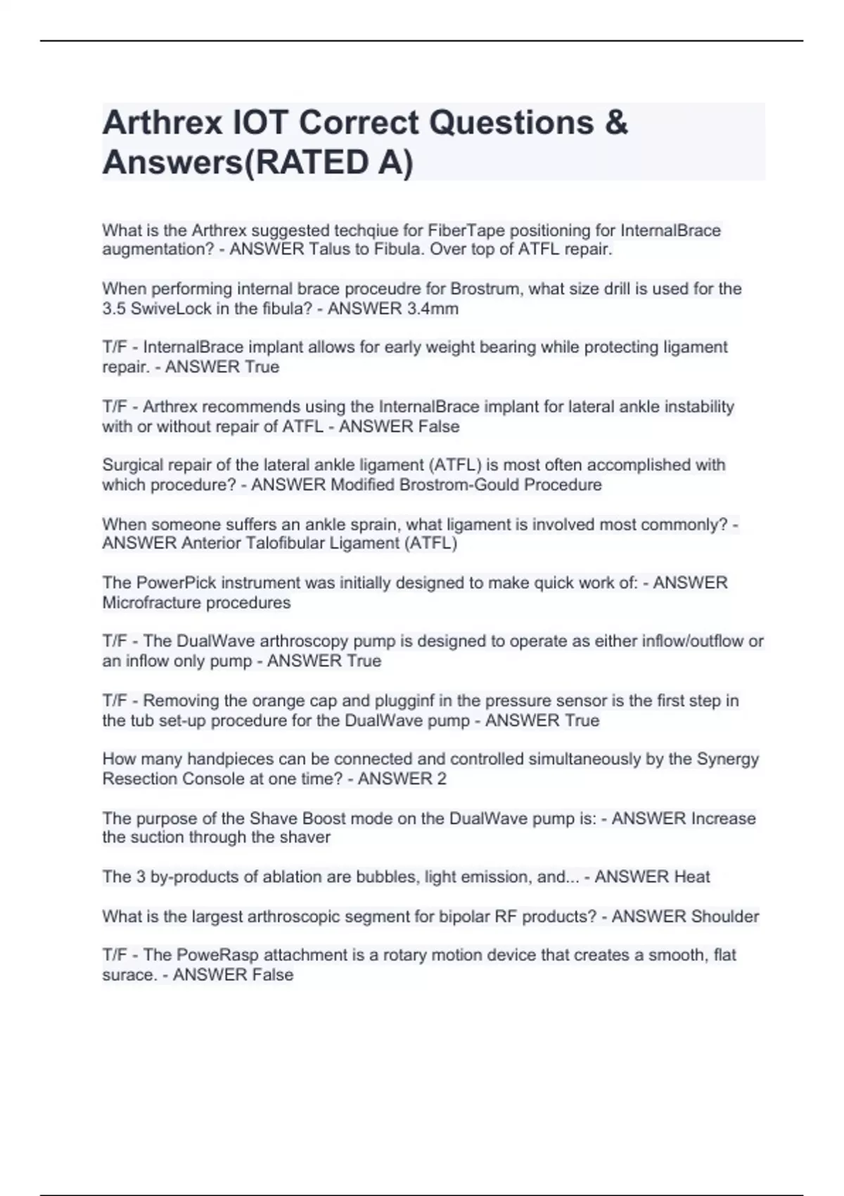 Arthrex IOT Correct Questions & Answers(RATED A)