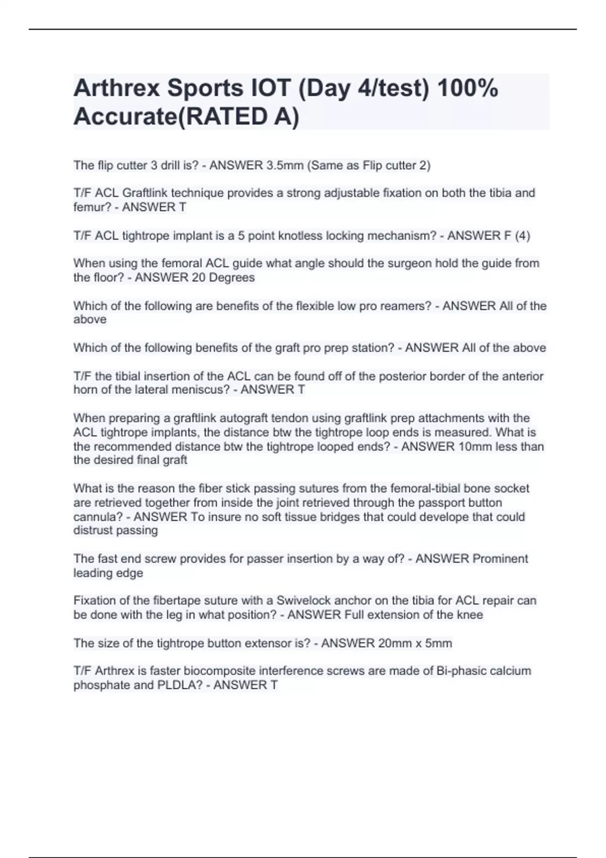 Arthrex Sports IOT (Day 4/test) 100% Accurate(RATED A)