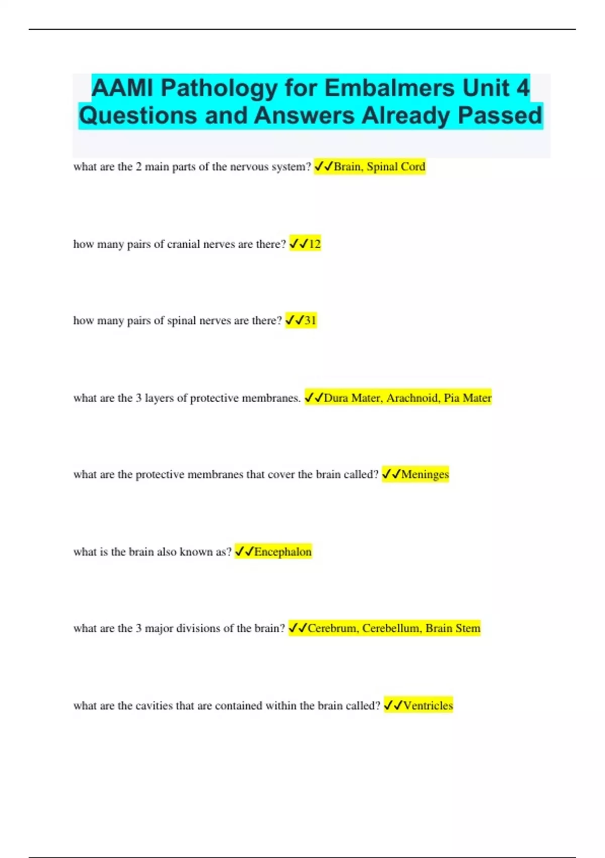 AAMI Pathology for Embalmers Unit 4 Questions and Answers Already Passed