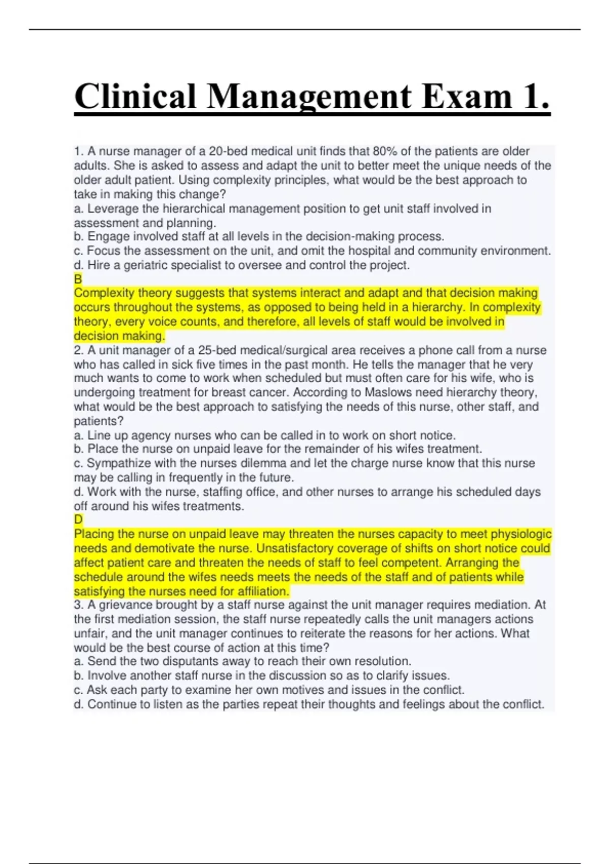 Clinical Management Exam 1.Quiz Arsenal Interrogatives and Responses