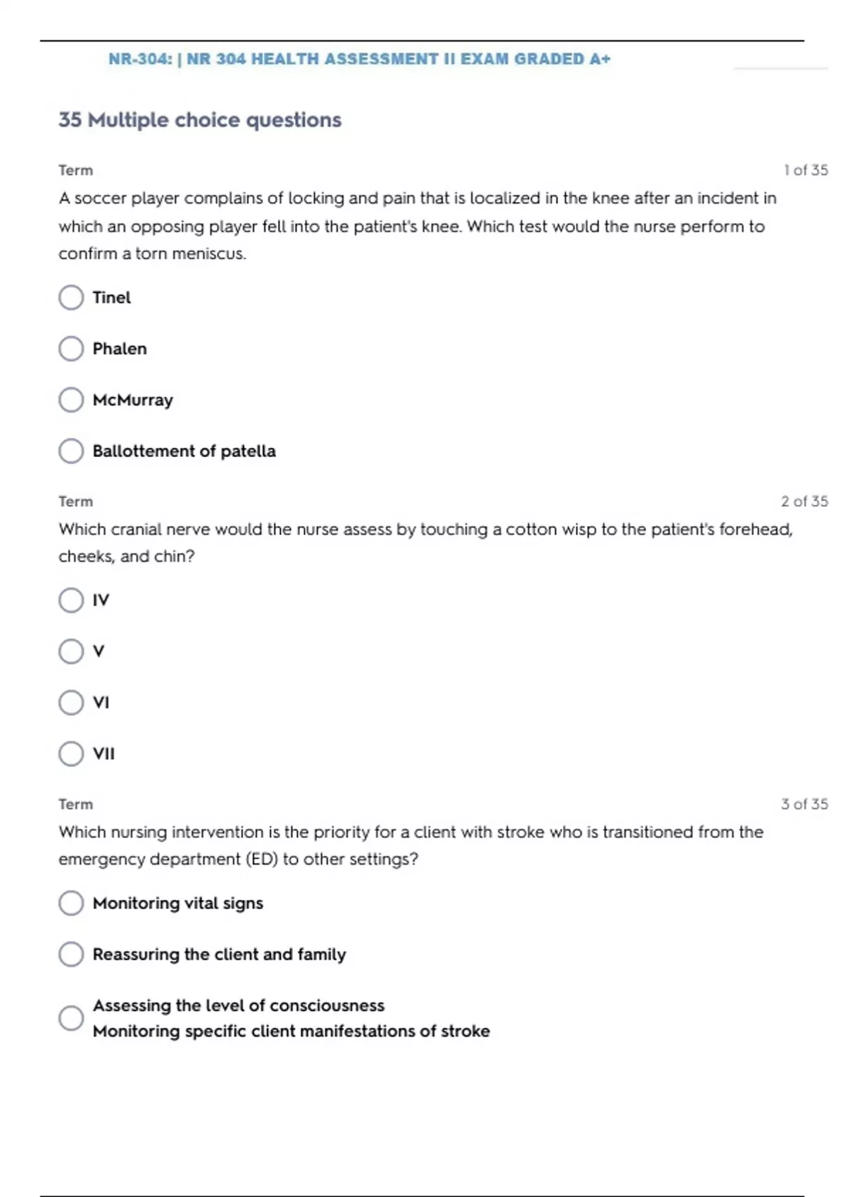 NR 304 HEALTH ASSESSMENT II EXAM 2 PRACTICE QUESTIONS WITH 100% SOLVED SOLUTIONS