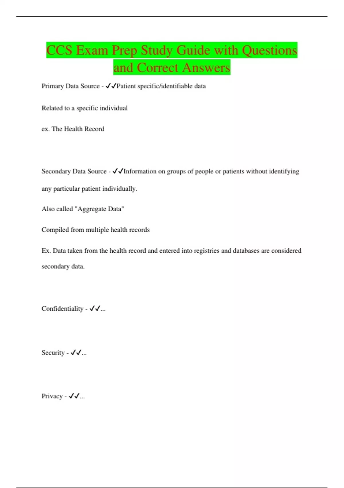 CCS Exam Prep Study Guide with Questions and Correct Answers