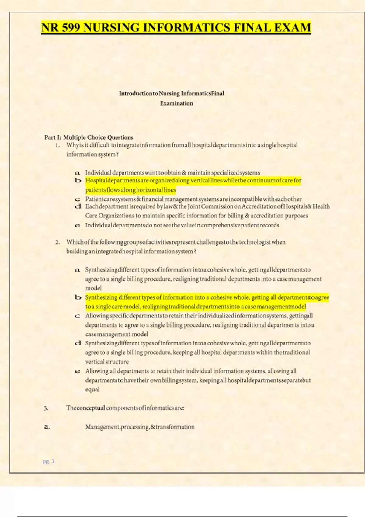 NR 599 NURSING INFORMATICS FINAL EXAM || 2024