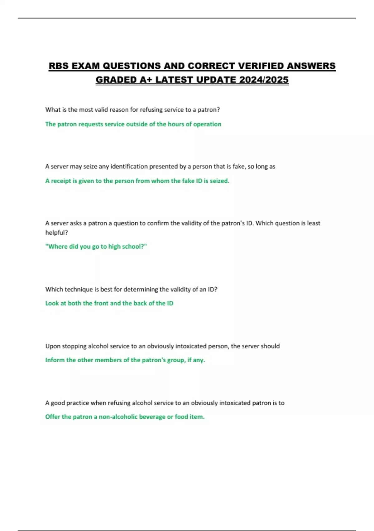 RBS EXAM QUESTIONS AND CORRECT VERIFIED ANSWERS GRADED A+ LATEST UPDATE 2024/2025