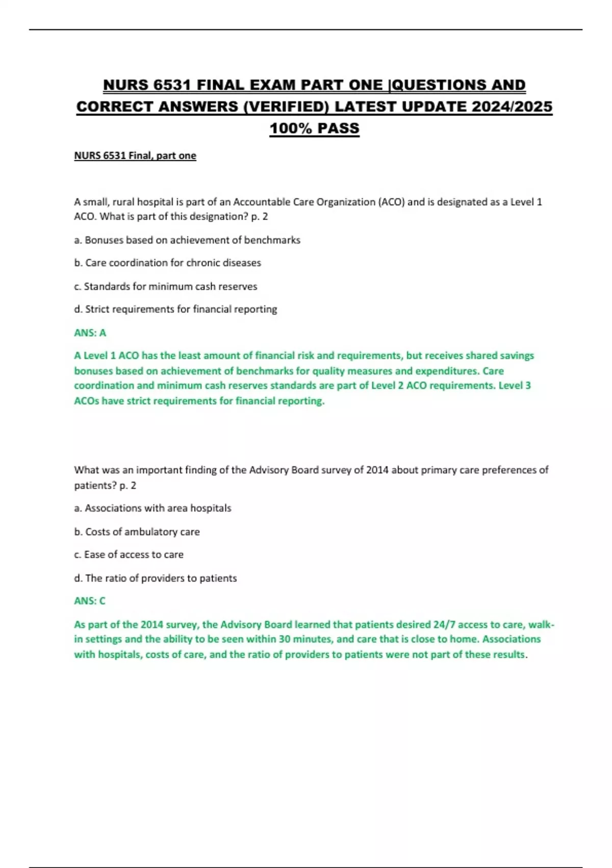 NURS 6531 FINAL EXAM PART ONE |QUESTIONS AND CORRECT ANSWERS (VERIFIED) LATEST UPDATE 2024/2025 100% PASS