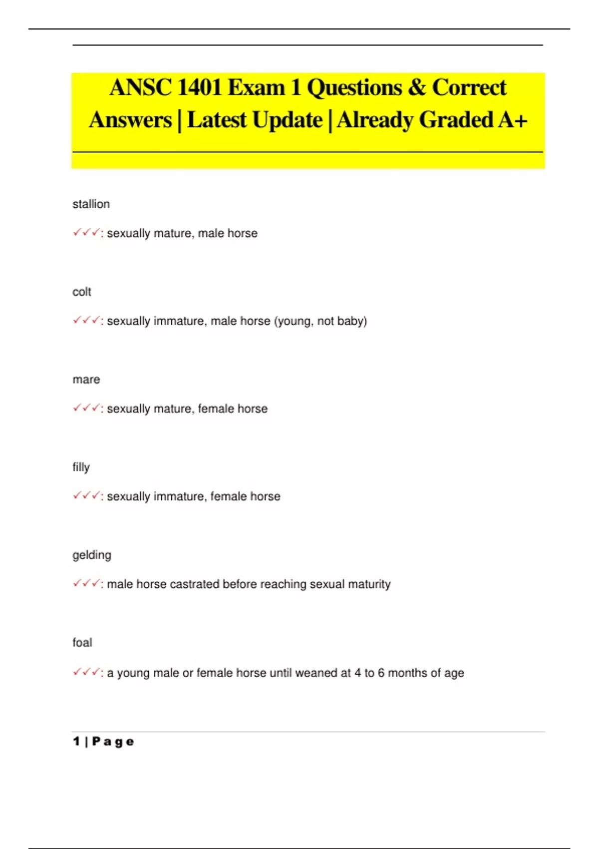 ANSC 1401 Exam 1 Questions & Correct Answers | Latest Update |Already Graded A+