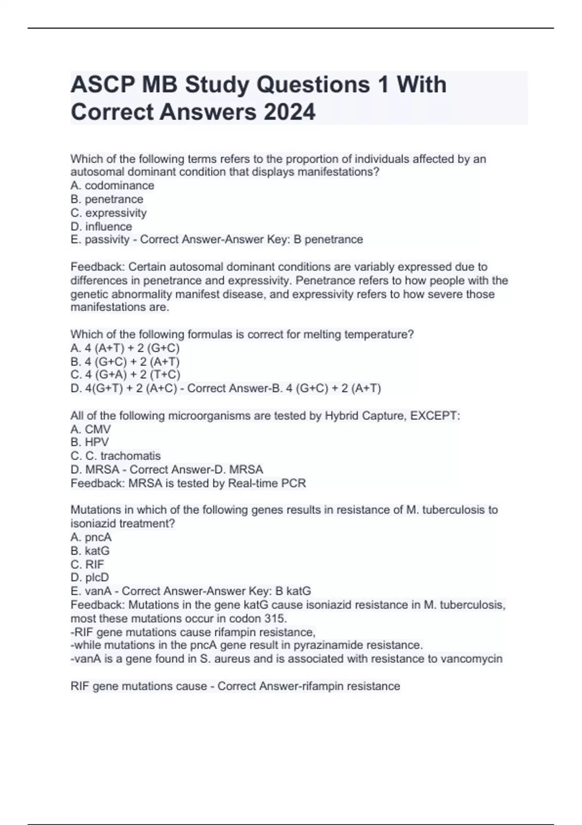 ASCP MB Study Questions 1 With Correct Answers 2024