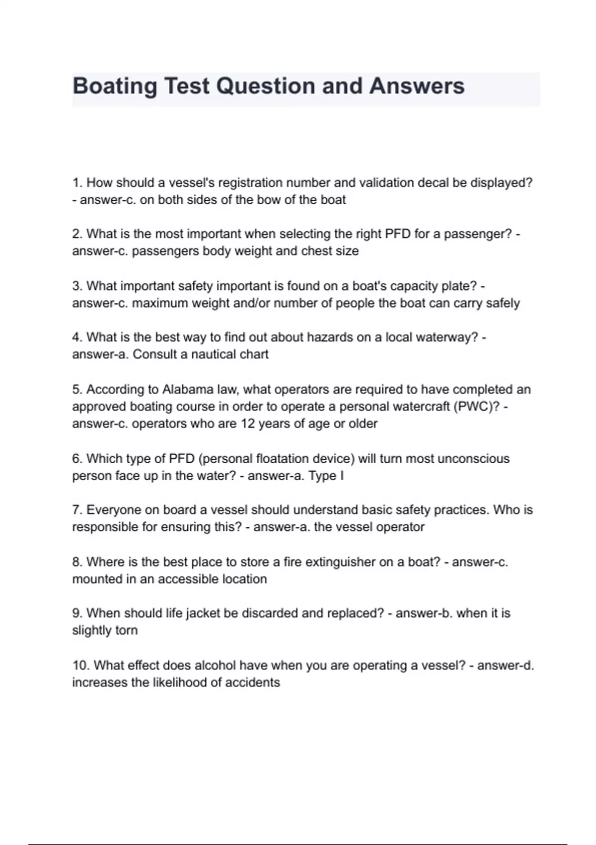 boating test question and answers