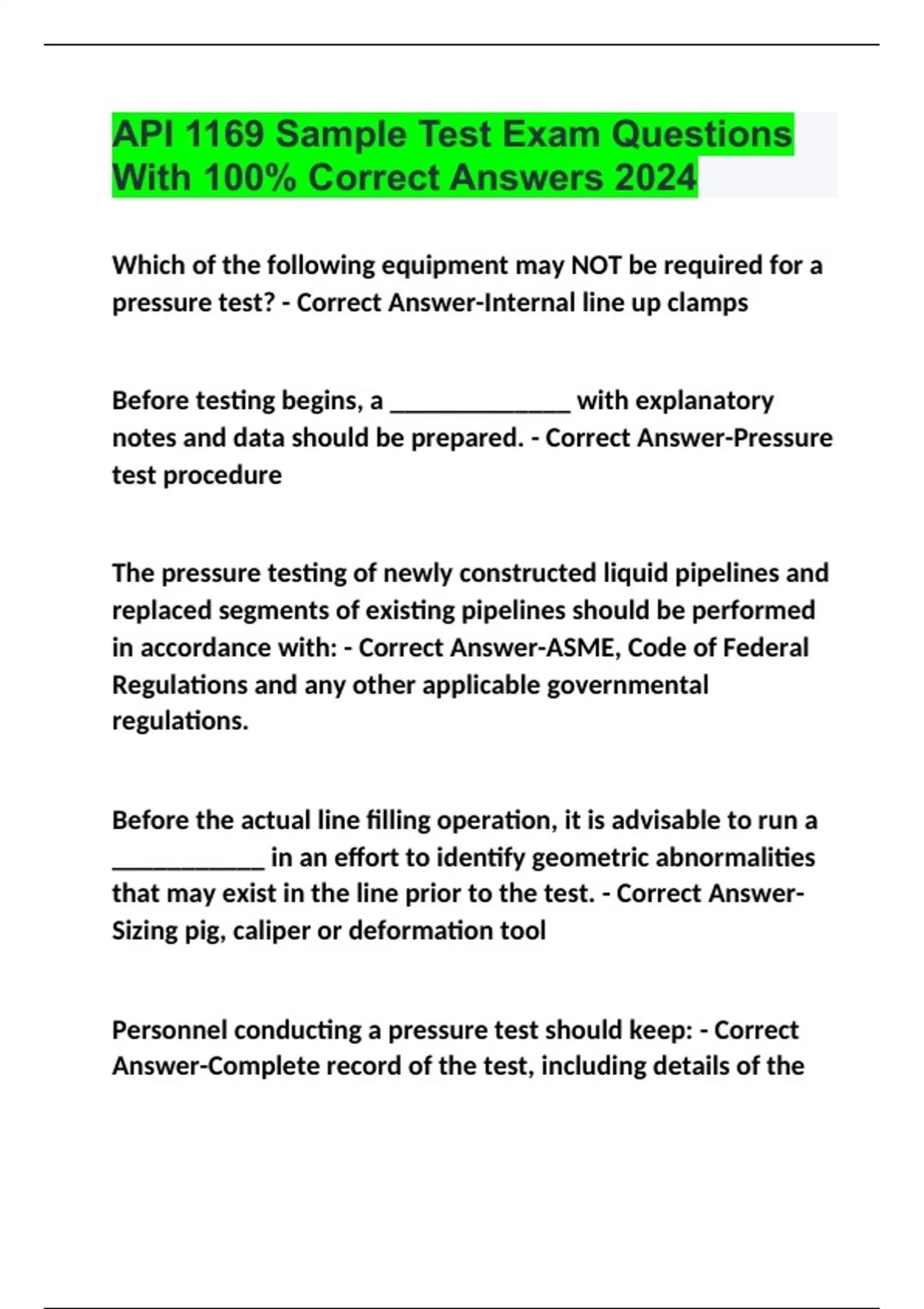 API 1169 Sample Test Exam Questions With 100% Correct Answers 2024