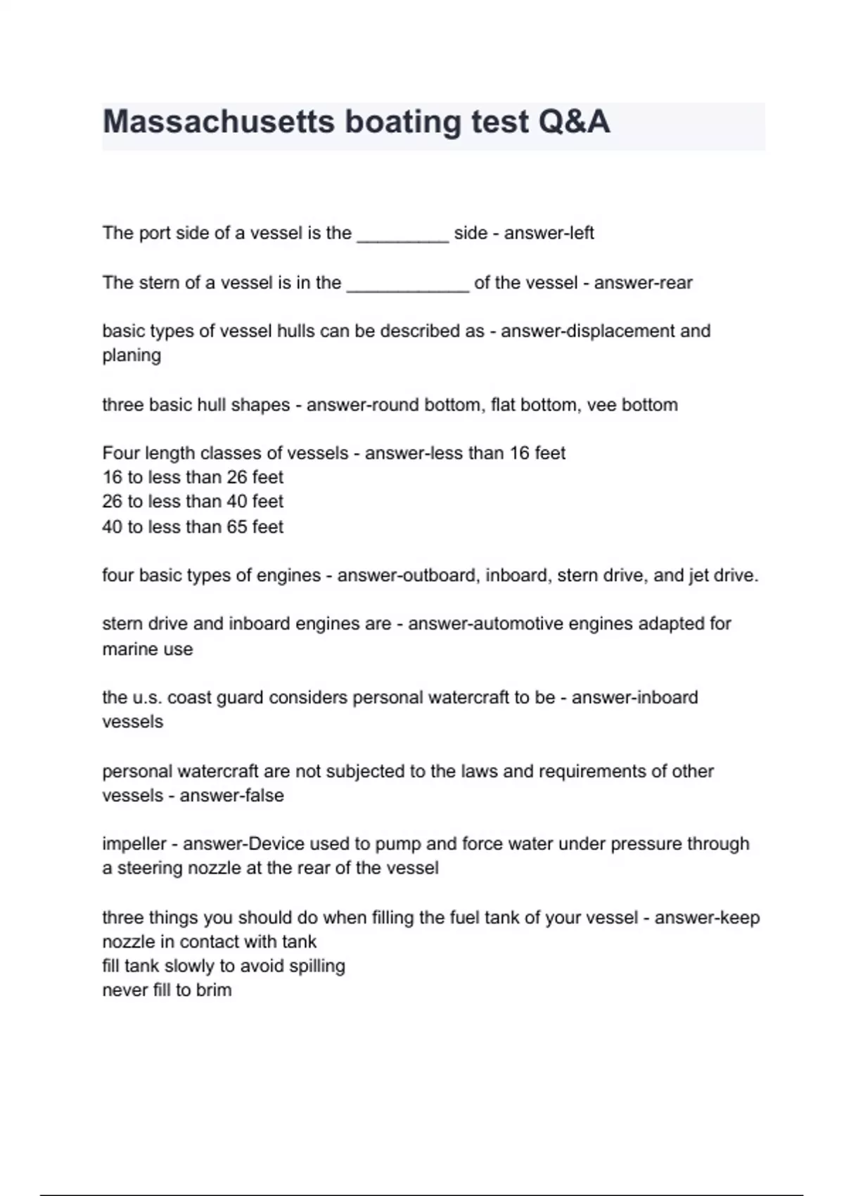 massachusetts boating test qa with complete solut