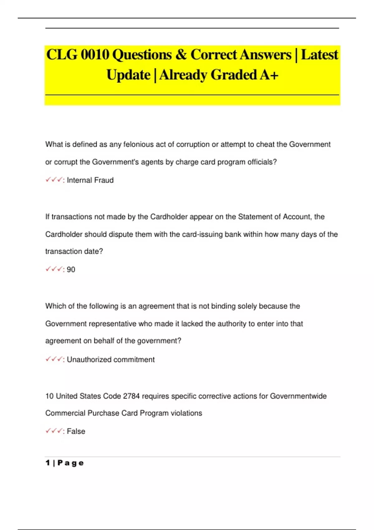 CLG Questions & Correct Answers | Latest Update |Already Graded A+