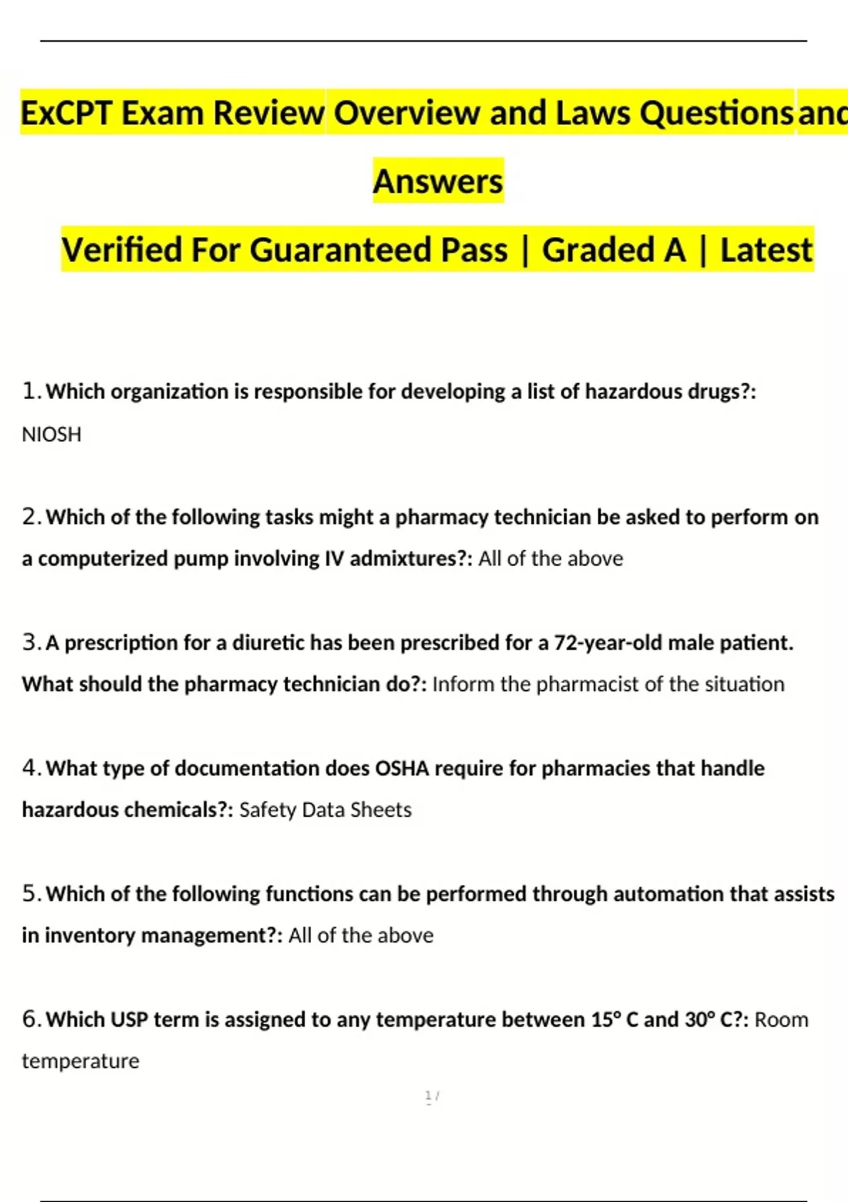 Verified For Guaranteed Pass | Graded A | Latest 1.Which organization is responsible for developing a list of hazardous drugs?: NIOSH