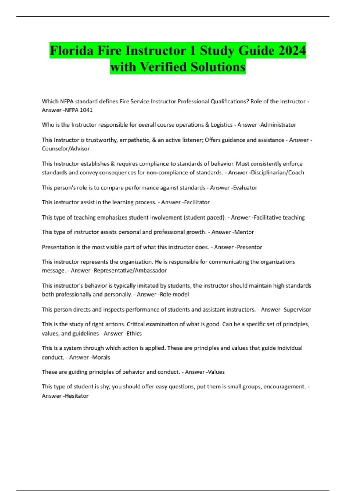 Florida Fire Instructor 1 Study Guide 2024 with Verified Solutions