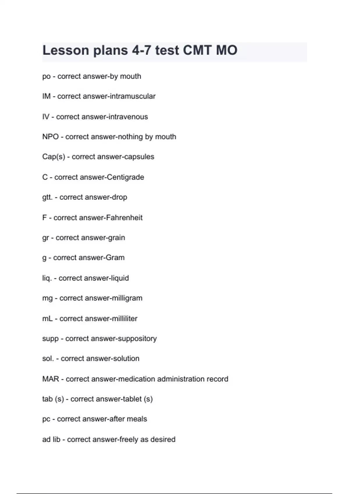 Lesson plans 4-7 test CMT MO