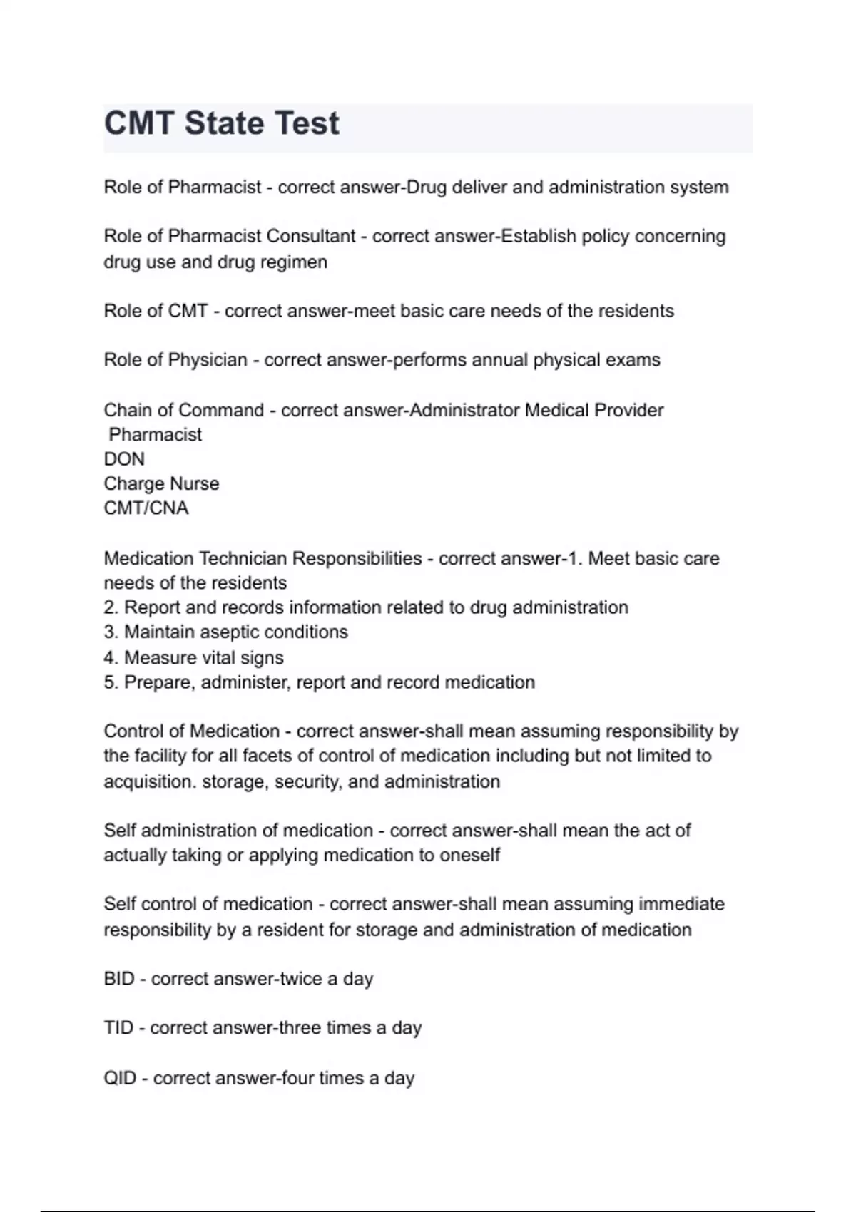 Exam of 6 pages for the course CMT - Master Tower® at CMT - Master Tower® (CMT State Test.)
