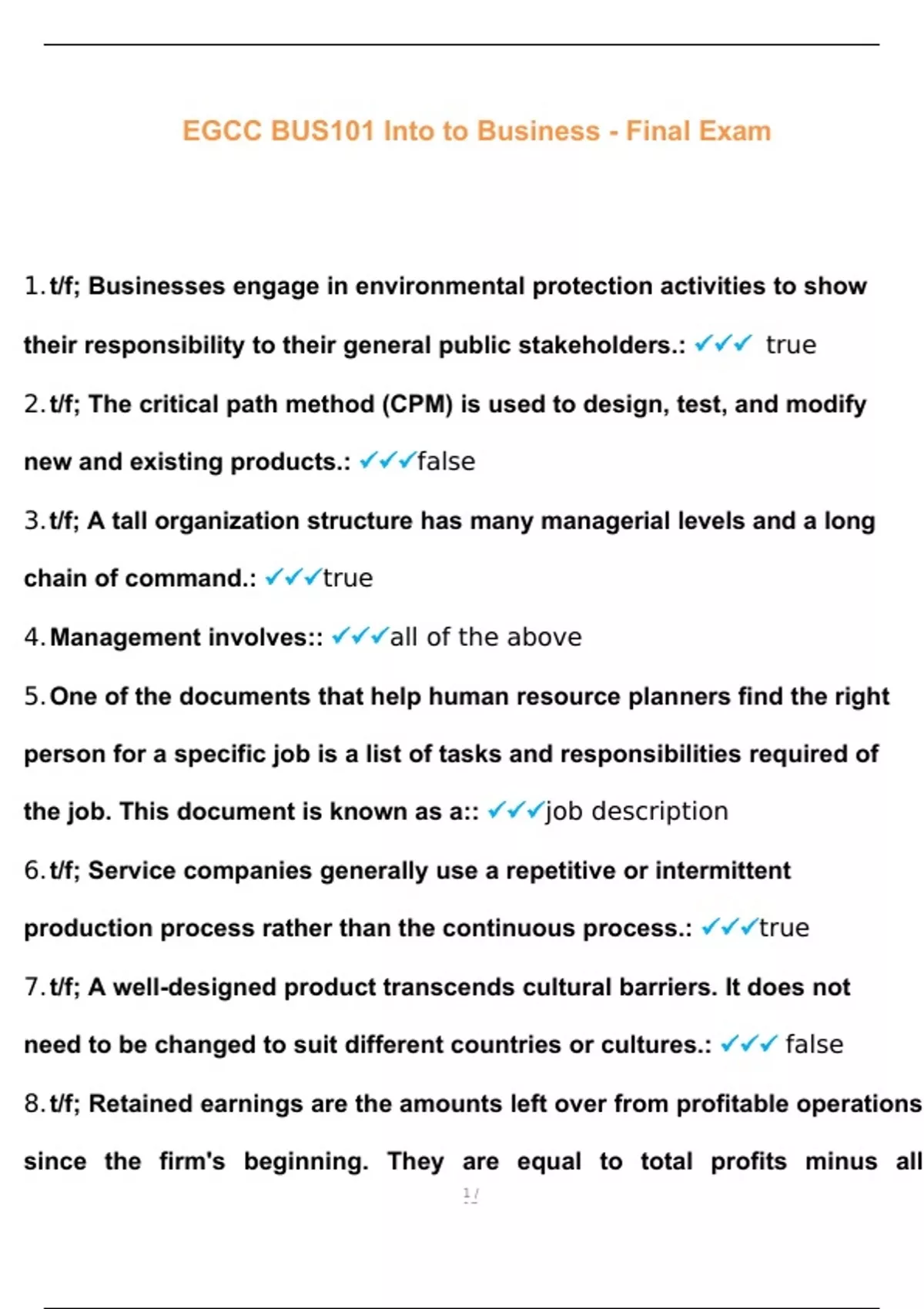 EGCC BUS101 Into to Business - Final Exam 2024(Graded at 100%)