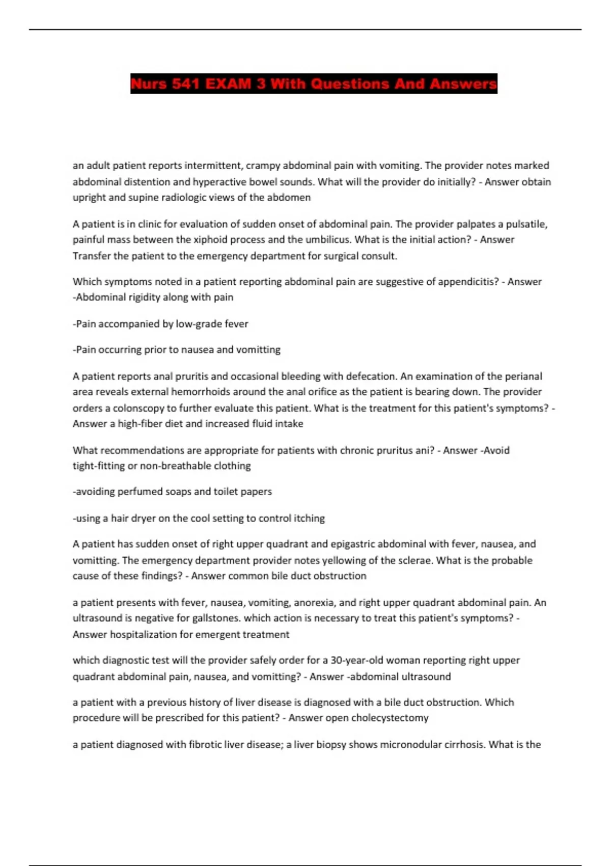 Nurs 541 EXAM 3 With Questions And Answers...