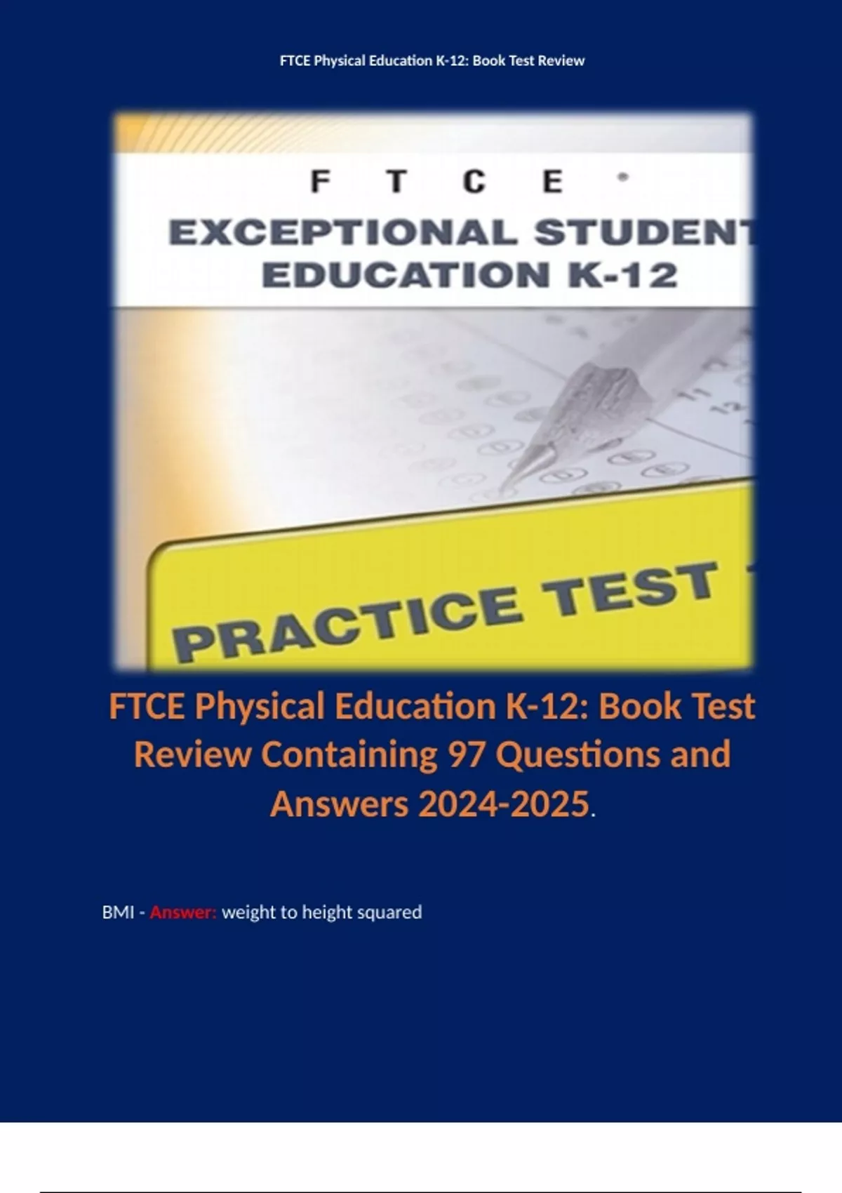 FTCE Physical Education K-12: Book Test Review Containing 97 Questions and Answers .