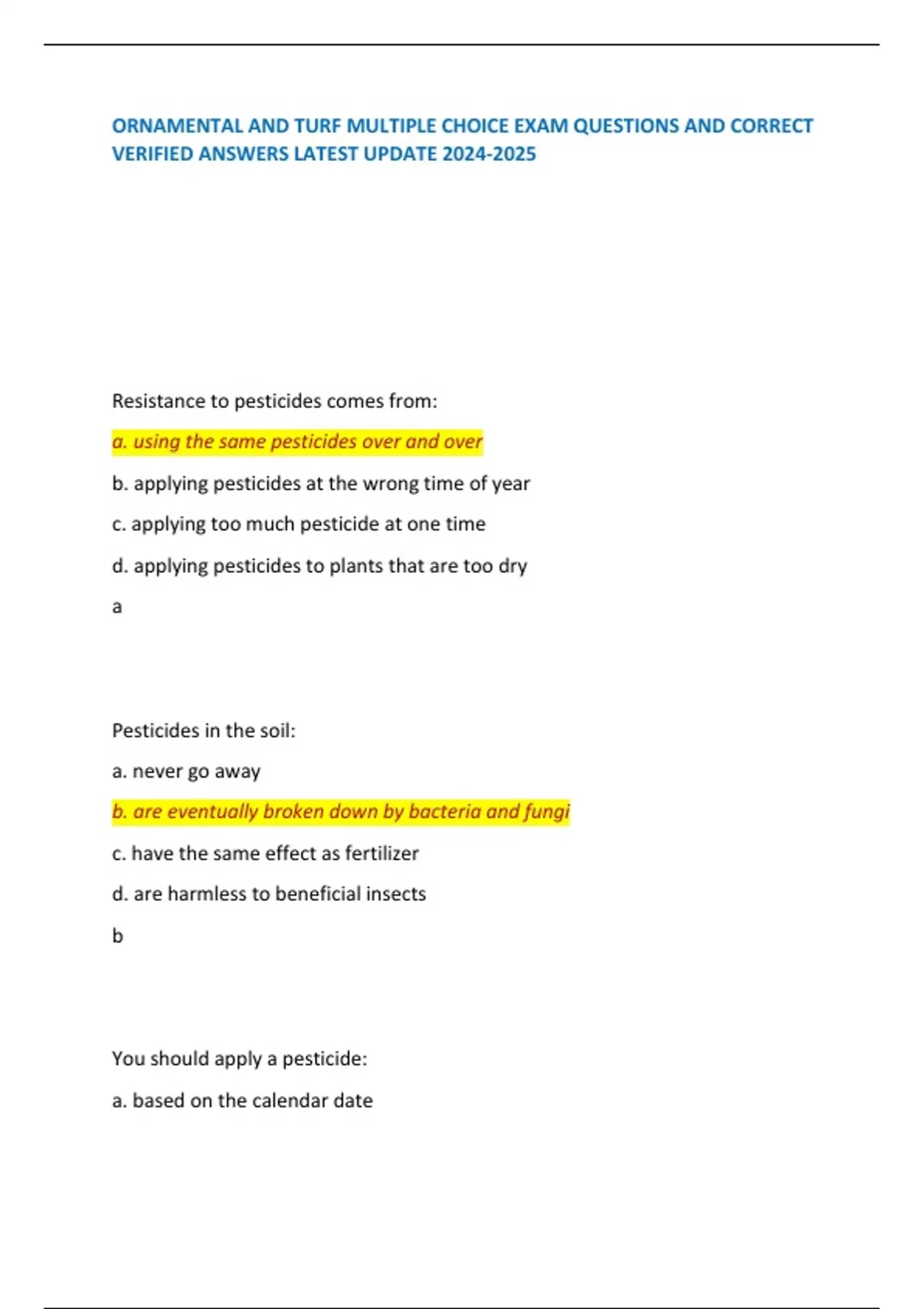 ORNAMENTAL AND TURF MULTIPLE CHOICE EXAM QUESTIONS AND CORRECT VERIFIED ANSWERS LATEST UPDATE ORNAMENTAL AND TURF MULTIPLE CHOICE EXAM QUESTIONS AND CORRECT VERIFIED ANSWERS LATEST UPDATE